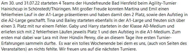 Die Ergebnisse können sich echt sehen lassen. Danke das ihr unseren Verein so erfolgreich vertretet.