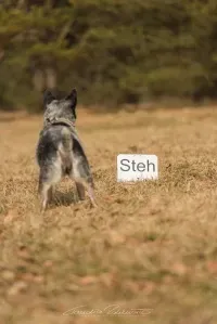 Sitz-, Steh-, und Platz-Position wechseln, wird auf Entfernung zu unterschiedlichen Markierungspunkten geschickt und muss zwischen rechts und links unterscheiden können. Beim