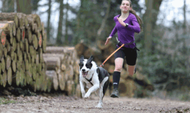 Im Geländelauf plus wird der Hund an einen Bauchgurt des Hundeführers angeleint und darf kräftig für bessere Ergebnisse und Laufzeiten mitziehen.